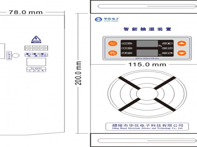 當(dāng)潮濕空氣經(jīng)風(fēng)扇吸入后,通過特殊設(shè)計(jì)的風(fēng)道流動(dòng),先經(jīng)半導(dǎo)體制冷器降溫結(jié)露,制冷器的結(jié)露在重力作用下滴入引水槽,再由導(dǎo)水管流出柜外。在設(shè)定啟動(dòng)值內(nèi)經(jīng)過充分循環(huán)除濕,使柜內(nèi)空氣濕度降至結(jié)露點(diǎn)以下,完成整個(gè)防潮引凝加熱過程。同時(shí),智能型除濕裝置信號采集傳感器外置,能實(shí)時(shí)準(zhǔn)確的采集到柜內(nèi)的真實(shí)濕度,保證智能型除濕裝置在柜內(nèi)將要達(dá)到凝露條件時(shí)提前啟動(dòng)除濕。