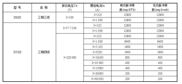 l 規(guī)格型號(hào)與脈沖常數(shù)對照表