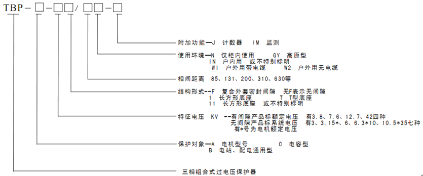 同時該產品也可按JB/T8459-1996《避雷器產品型號編制方法》的編制原則進行擴展定義,具體型號定義如下: